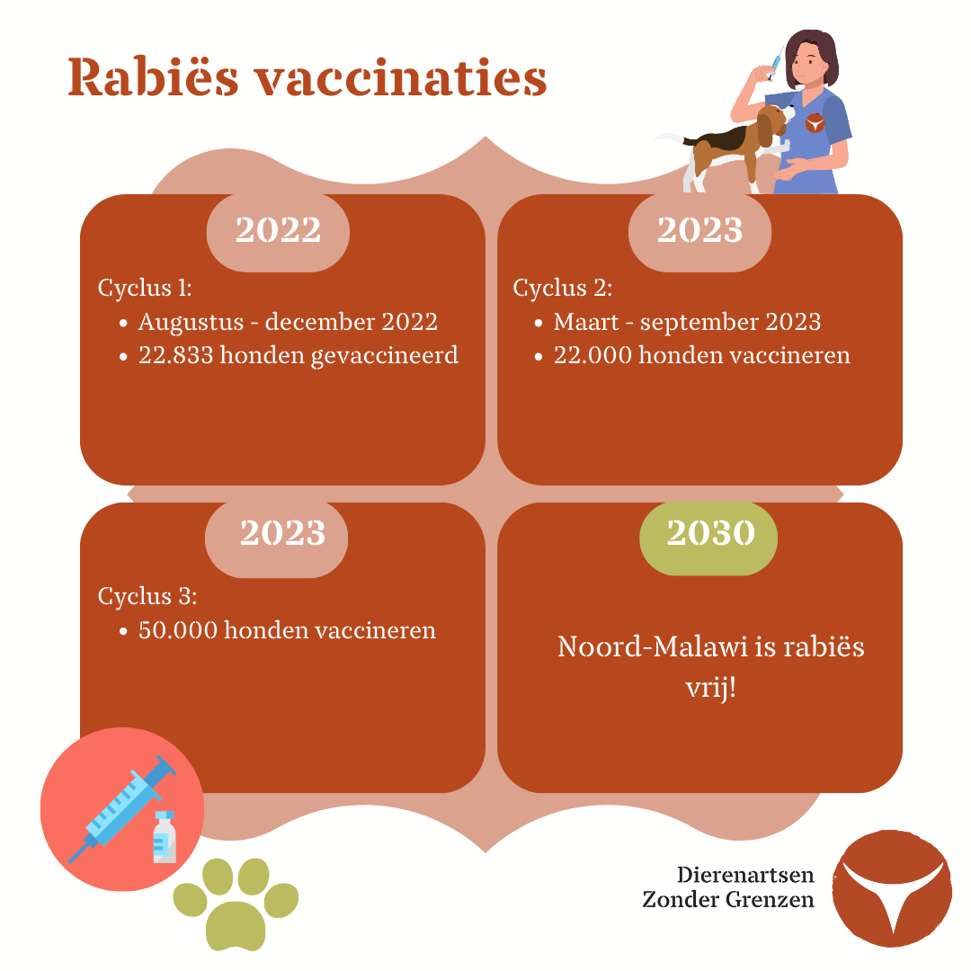 In Malawi, een land in Afrika met meer dan 400.000 honden, is rabiës een veel voorkomend probleem. Slechts 0,5% van deze honden is gevaccineerd, maar om rabiës onder controle te krijgen moet elk jaar ten minste 70% van de risicogroepen worden gevaccineerd. Naar schatting sterven in Malawi jaarlijks 500 mensen aan dit virus. Dit hoeft niet zo te zijn. Wij, Dierenartsen Zonder Grenzen Nederland, hebben de missie om Malawi voor 2030 volledig rabiësvrij te maken.
